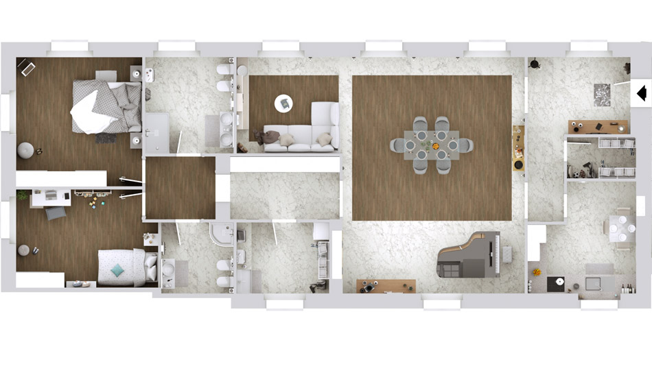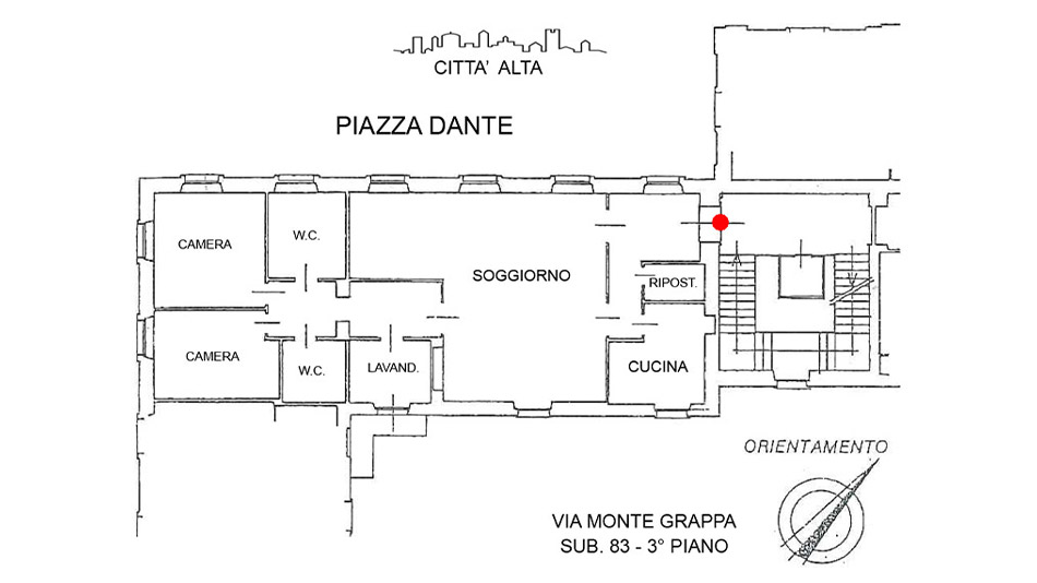 L’immobile, da ristrutturare, si trova al 3° piano di un edificio posizionato in via Monte Grappa 5, servito da ascensore. La soluzione presenta come caratteristica dominante il marmo e il parquet, entrambi coerenti con lo stile dello stabile. La vista su Piazza Dante con uno scorcio di Città Alta lo rende ancora più imperdibile.